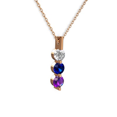 Swarovski, lab safir ve ametist 8 ayar rose altın kolye (40 cm rose altın rolo zincir)