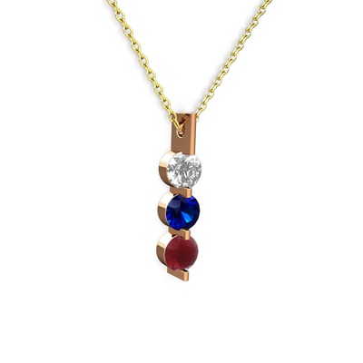 Swarovski, lab safir ve kök yakut 14 ayar rose altın kolye (40 cm gümüş rolo zincir)