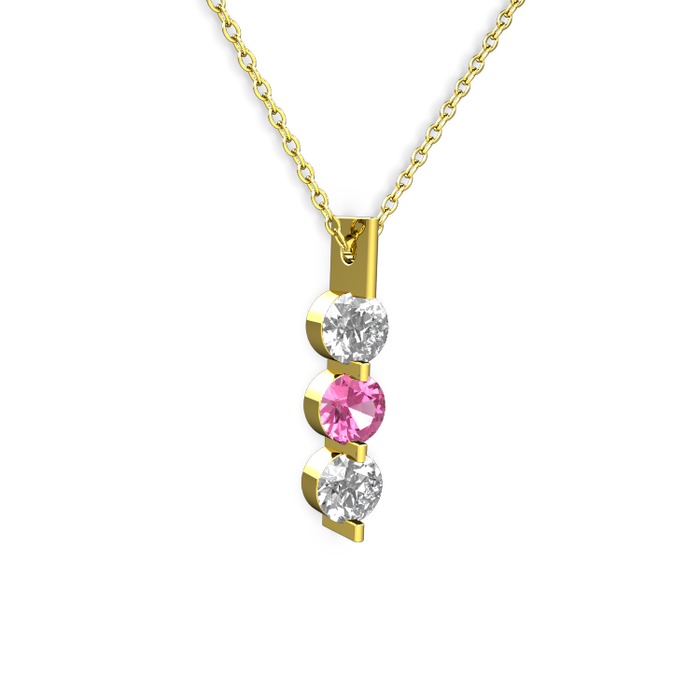 Swarovski ve pembe kuvars 925 ayar altın kaplama gümüş kolye (40 cm altın rolo zincir)