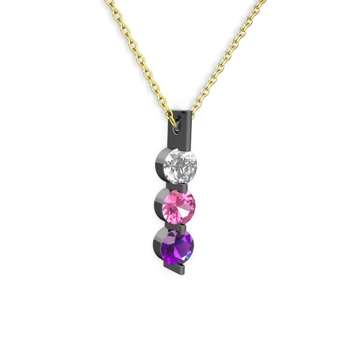 Swarovski, pembe kuvars ve ametist 925 ayar siyah rodyum kaplama gümüş kolye (40 cm gümüş rolo zincir)
