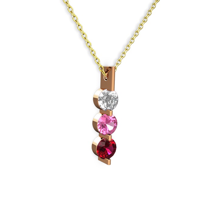 Swarovski, pembe kuvars ve rodolit garnet 925 ayar rose altın kaplama gümüş kolye (40 cm altın rolo zincir)
