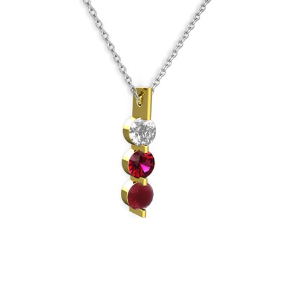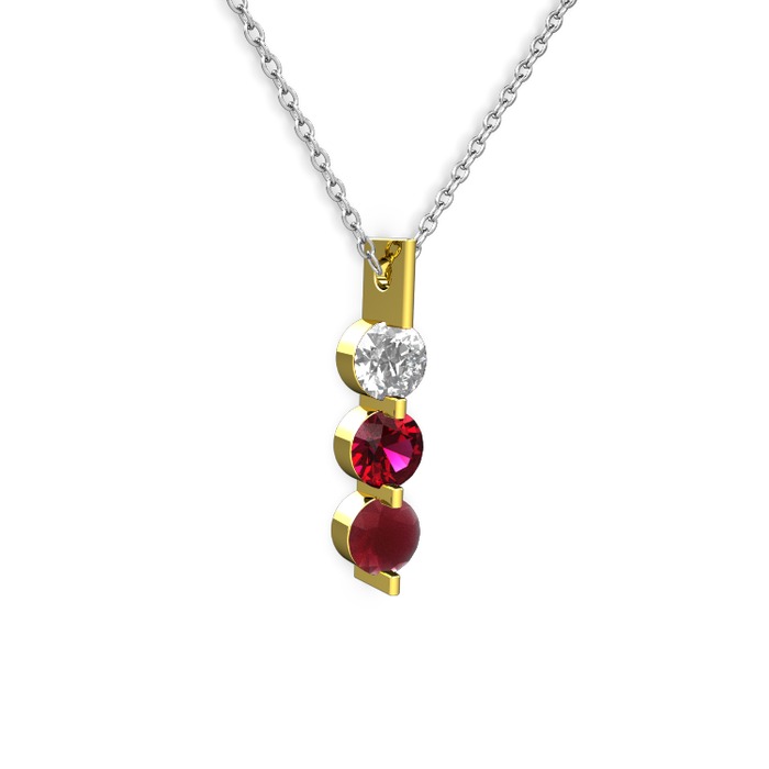 Swarovski, rodolit garnet ve kök yakut 14 ayar altın kolye (40 cm beyaz altın rolo zincir)