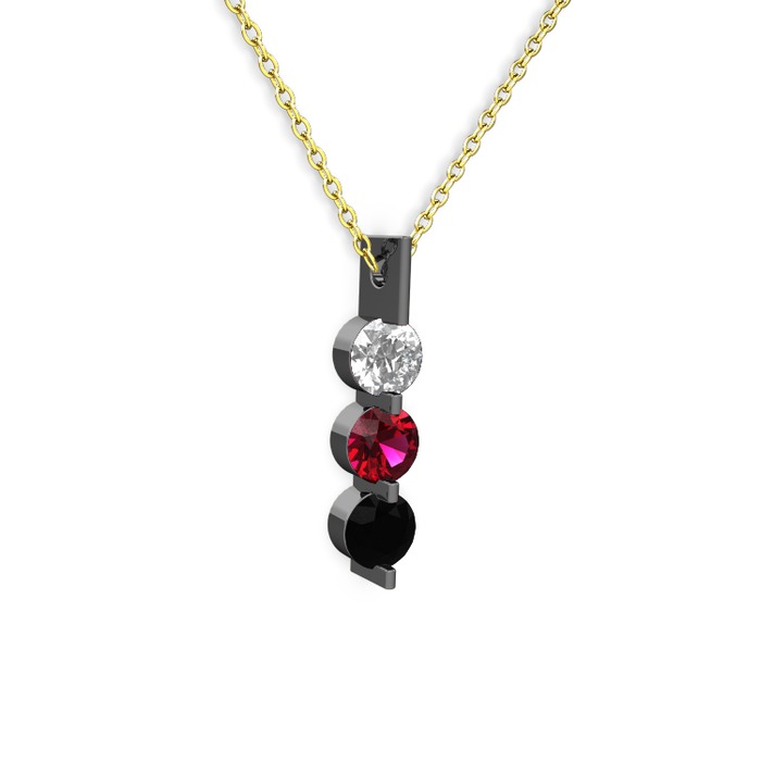 Swarovski, rodolit garnet ve siyah zirkon 925 ayar siyah rodyum kaplama gümüş kolye (40 cm altın rolo zincir)