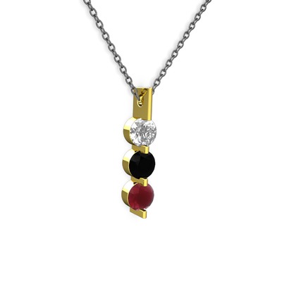 Swarovski, siyah zirkon ve kök yakut 14 ayar altın kolye (40 cm gümüş rolo zincir)