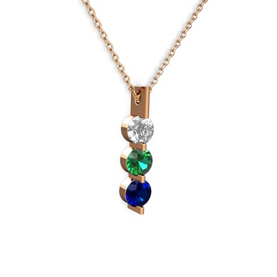 Swarovski, yeşil kuvars ve lab safir 8 ayar rose altın kolye (40 cm gümüş rolo zincir)