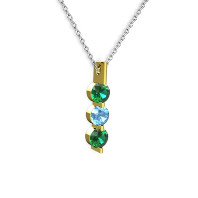 Yeşil kuvars ve akuamarin 14 ayar altın kolye (40 cm gümüş rolo zincir)
