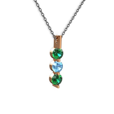 Yeşil kuvars ve akuamarin 14 ayar rose altın kolye (40 cm gümüş rolo zincir)