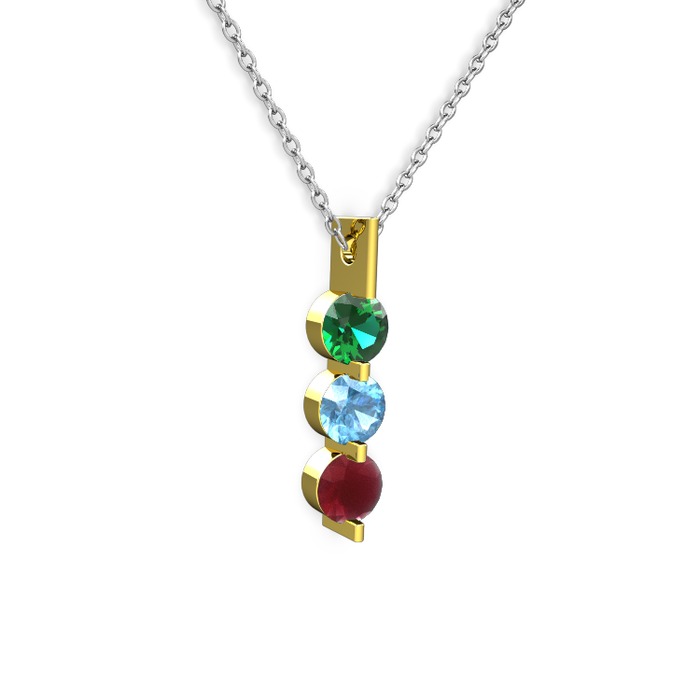 Yeşil kuvars, akuamarin ve kök yakut 8 ayar altın kolye (40 cm beyaz altın rolo zincir)