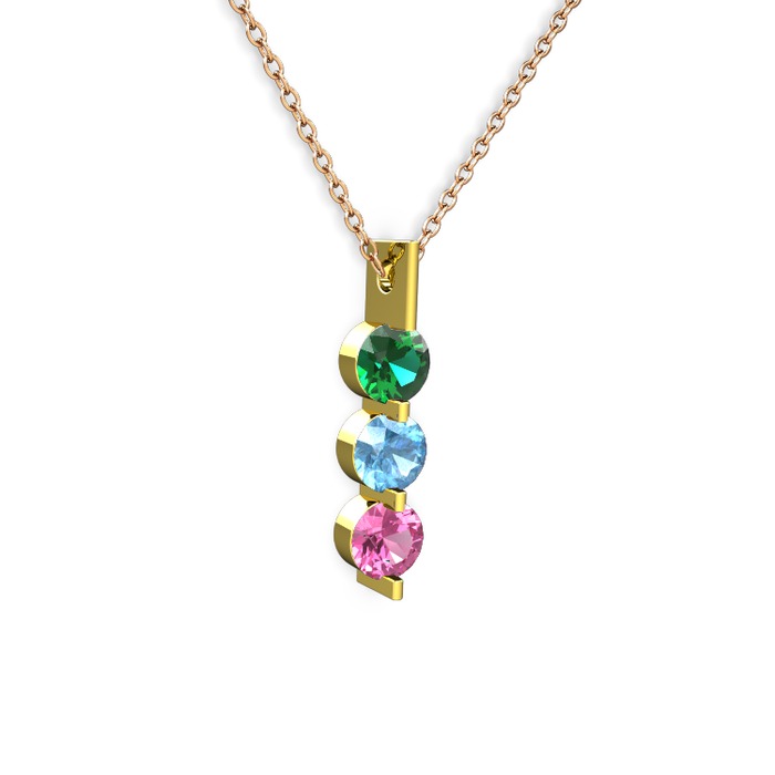 Yeşil kuvars, akuamarin ve pembe kuvars 14 ayar altın kolye (40 cm gümüş rolo zincir)