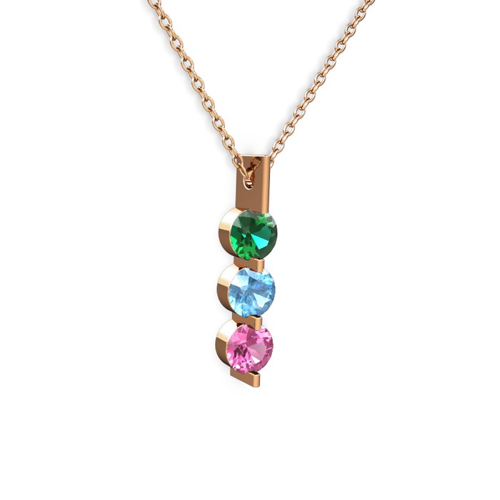 Yeşil kuvars, akuamarin ve pembe kuvars 8 ayar rose altın kolye (40 cm gümüş rolo zincir)