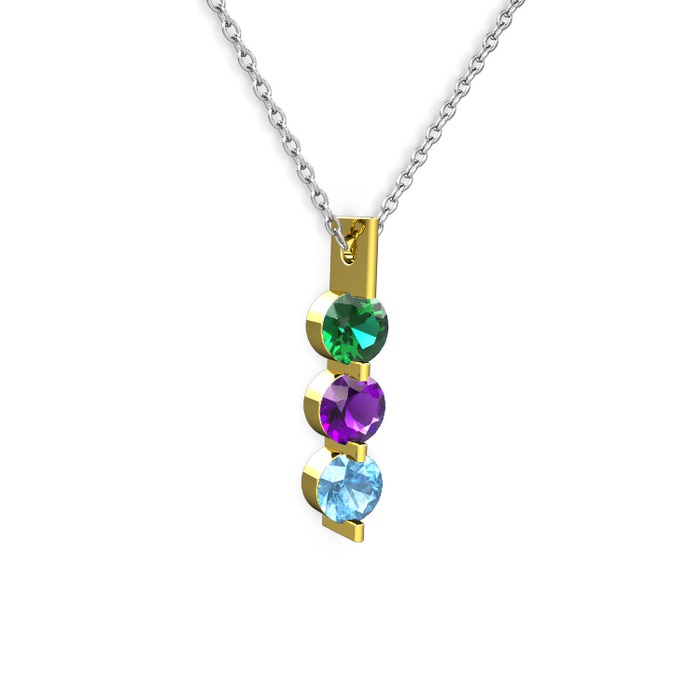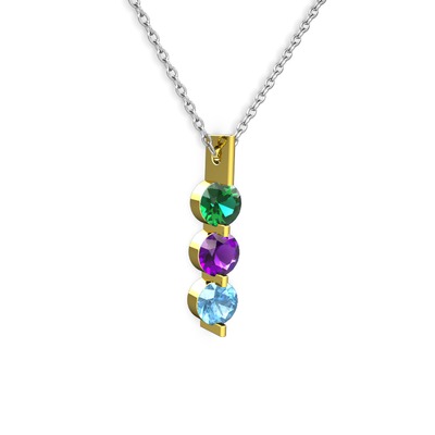 Yeşil kuvars, ametist ve akuamarin 14 ayar altın kolye (40 cm beyaz altın rolo zincir)