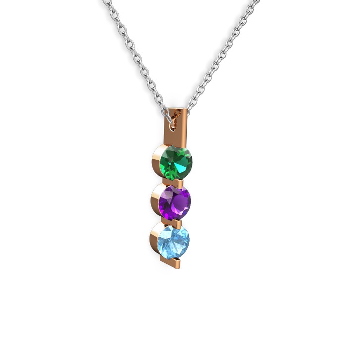 Yeşil kuvars, ametist ve akuamarin 8 ayar rose altın kolye (40 cm beyaz altın rolo zincir)