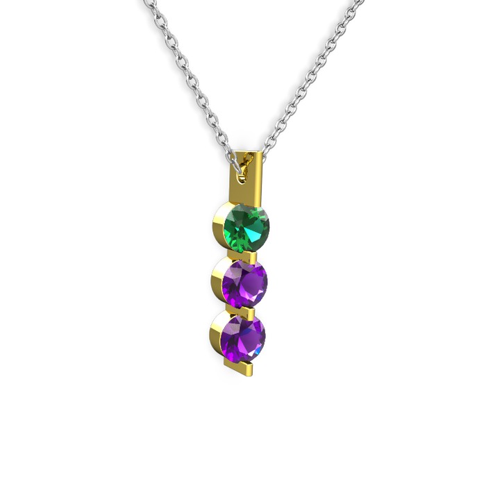 Yeşil kuvars ve ametist 925 ayar altın kaplama gümüş kolye (40 cm gümüş rolo zincir)