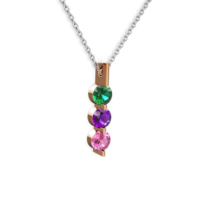 Yeşil kuvars, ametist ve pembe kuvars 925 ayar rose altın kaplama gümüş kolye (40 cm beyaz altın rolo zincir)