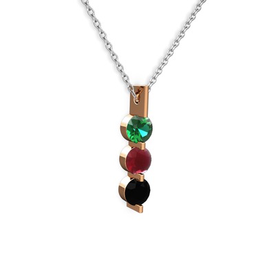 Yeşil kuvars, kök yakut ve siyah zirkon 14 ayar rose altın kolye (40 cm beyaz altın rolo zincir)