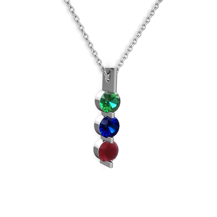 Yeşil kuvars, lab safir ve kök yakut 8 ayar beyaz altın kolye (40 cm beyaz altın rolo zincir)