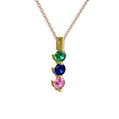 Yeşil kuvars, lab safir ve pembe kuvars 8 ayar altın kolye (40 cm rose altın rolo zincir)