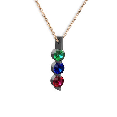 Yeşil kuvars, lab safir ve rodolit garnet 925 ayar siyah rodyum kaplama gümüş kolye (40 cm rose altın rolo zincir)