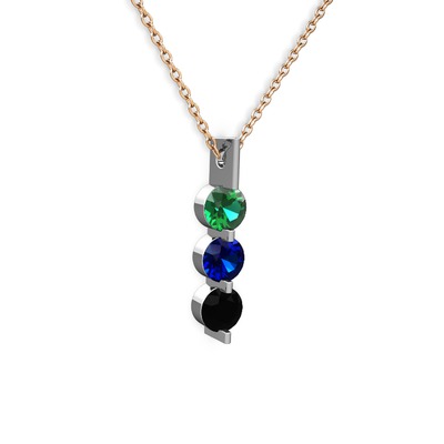Yeşil kuvars, lab safir ve siyah zirkon 14 ayar beyaz altın kolye (40 cm rose altın rolo zincir)