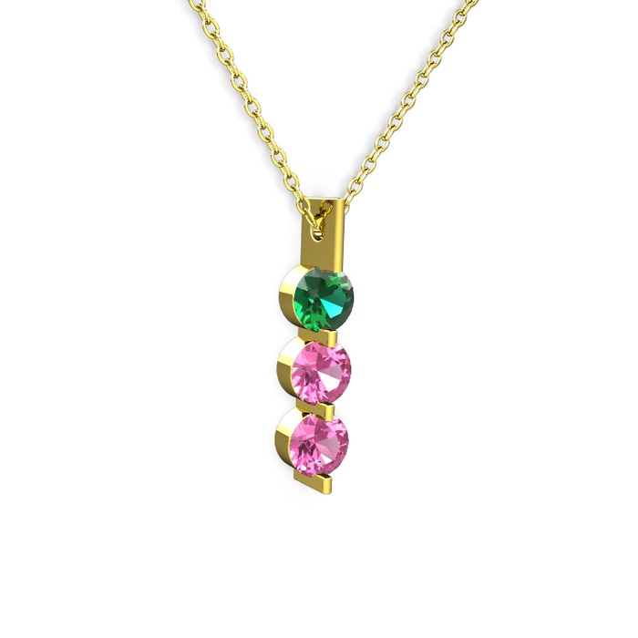 Yeşil kuvars ve pembe kuvars 8 ayar altın kolye (40 cm altın rolo zincir)