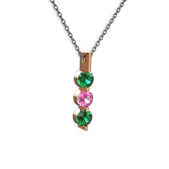 Yeşil kuvars ve pembe kuvars 925 ayar rose altın kaplama gümüş kolye (40 cm gümüş rolo zincir)