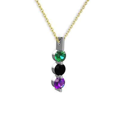 Yeşil kuvars, siyah zirkon ve ametist 8 ayar beyaz altın kolye (40 cm altın rolo zincir)