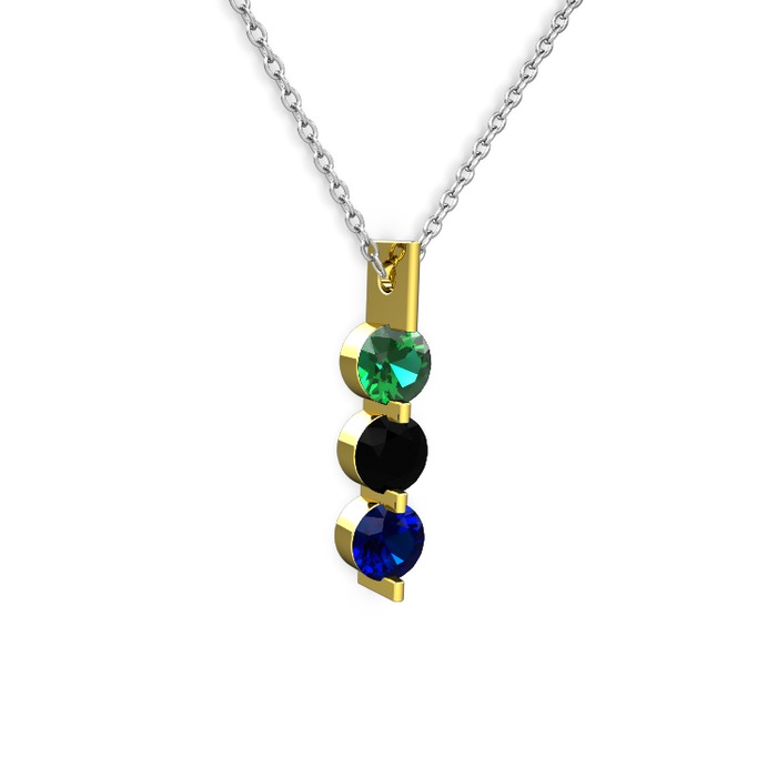 Yeşil kuvars, siyah zirkon ve lab safir 14 ayar altın kolye (40 cm beyaz altın rolo zincir)