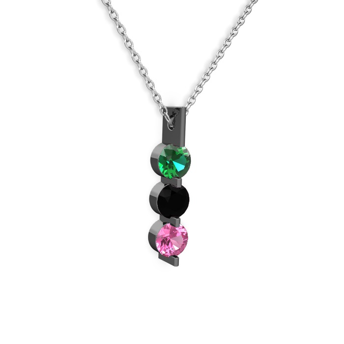 Yeşil kuvars, siyah zirkon ve pembe kuvars 925 ayar siyah rodyum kaplama gümüş kolye (40 cm beyaz altın rolo zincir)