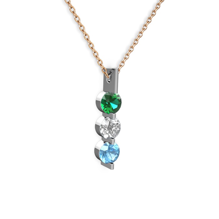 Yeşil kuvars, swarovski ve akuamarin 14 ayar beyaz altın kolye (40 cm rose altın rolo zincir)