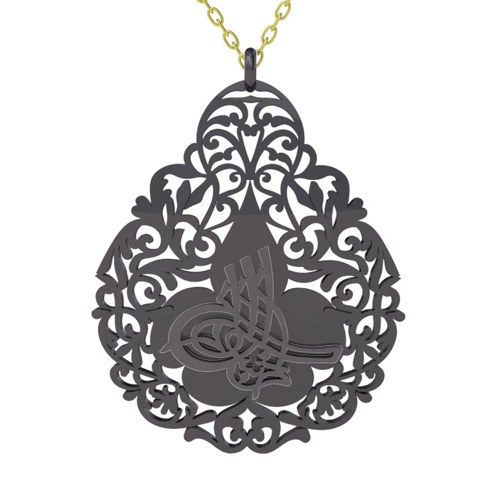 1. Tuğra Materyal 925 ayar siyah rodyum kaplama gümüş