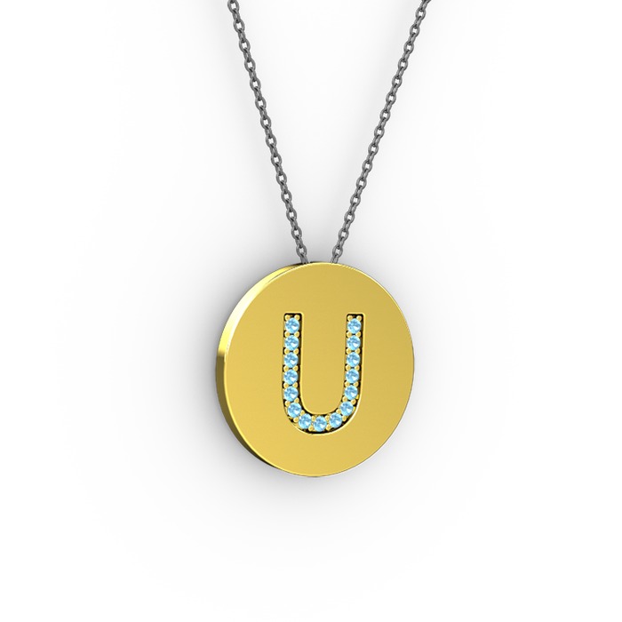 Akuamarin 14 ayar altın kolye (40 cm gümüş rolo zincir)