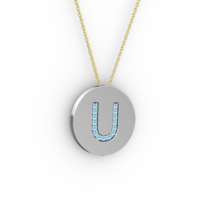 Akuamarin 8 ayar beyaz altın kolye (40 cm gümüş rolo zincir)
