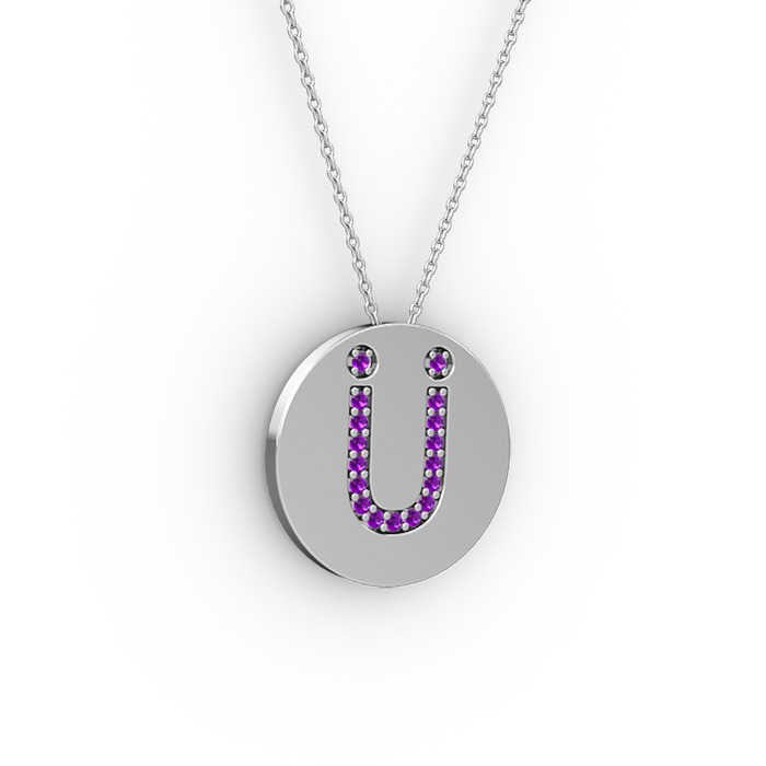 Ametist 14 ayar beyaz altın kolye (40 cm beyaz altın rolo zincir)
