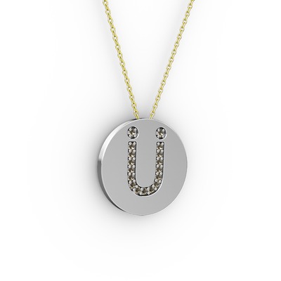 Dumanlı kuvars 14 ayar beyaz altın kolye (40 cm altın rolo zincir)