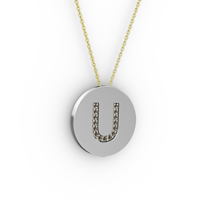 Dumanlı kuvars 8 ayar beyaz altın kolye (40 cm altın rolo zincir)