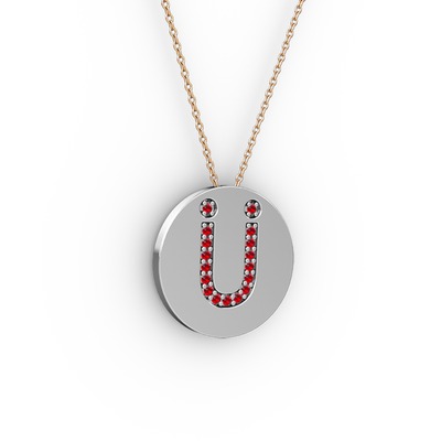 Garnet 14 ayar beyaz altın kolye (40 cm rose altın rolo zincir)