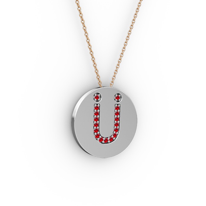 Garnet 8 ayar beyaz altın kolye (40 cm rose altın rolo zincir)