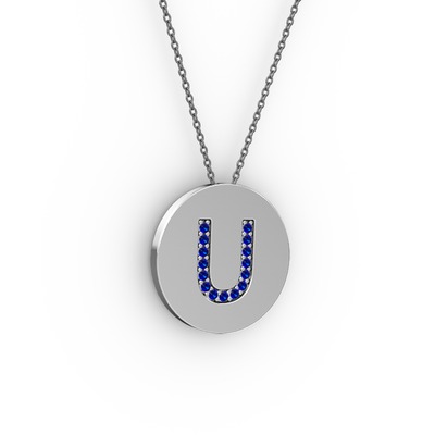 Lab safir 14 ayar beyaz altın kolye (40 cm gümüş rolo zincir)