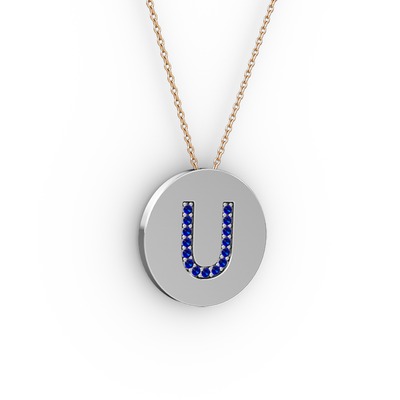 Lab safir 8 ayar beyaz altın kolye (40 cm rose altın rolo zincir)