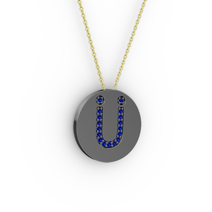 Lab safir 925 ayar siyah rodyum kaplama gümüş kolye (40 cm altın rolo zincir)
