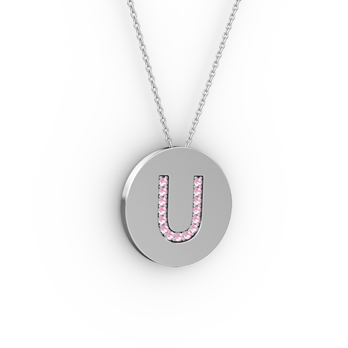 Pembe kuvars 18 ayar beyaz altın kolye (40 cm beyaz altın rolo zincir)