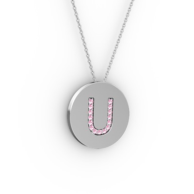 Pembe kuvars 925 ayar gümüş kolye (40 cm beyaz altın rolo zincir)