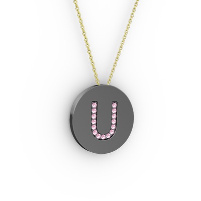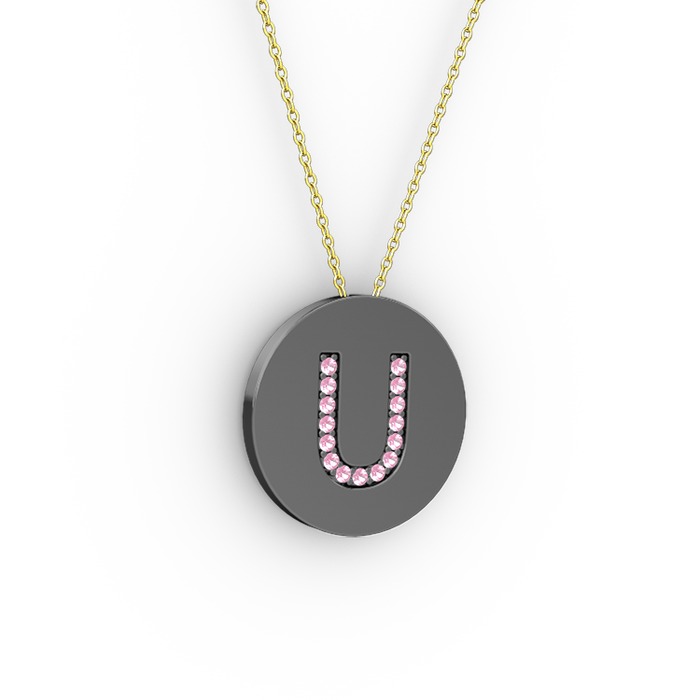 Pembe kuvars 925 ayar siyah rodyum kaplama gümüş kolye (40 cm altın rolo zincir)