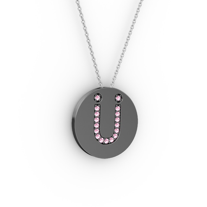 Pembe kuvars 925 ayar siyah rodyum kaplama gümüş kolye (40 cm beyaz altın rolo zincir)