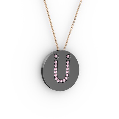 Pembe kuvars 925 ayar siyah rodyum kaplama gümüş kolye (40 cm gümüş rolo zincir)