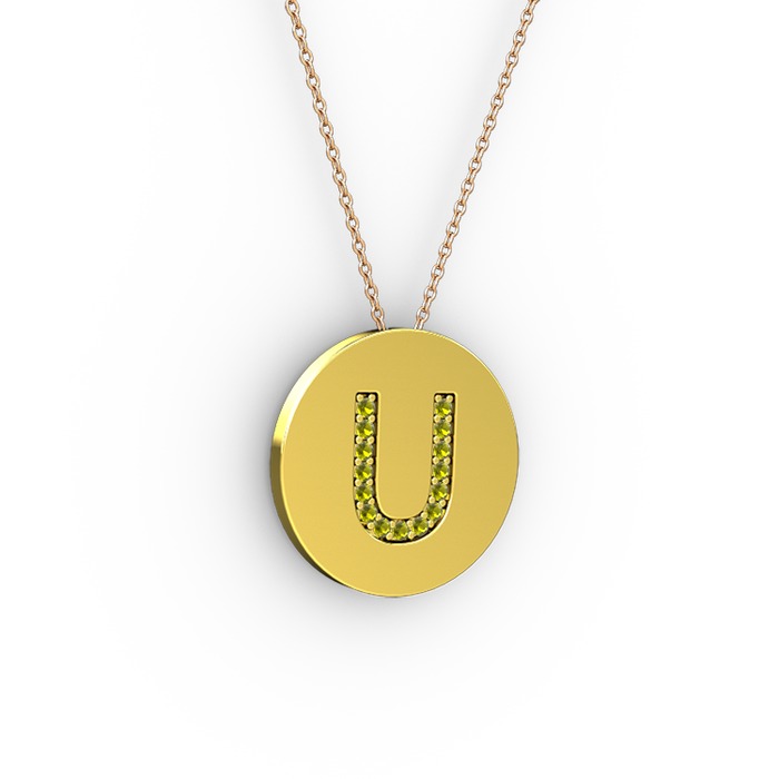 Peridot 8 ayar altın kolye (40 cm rose altın rolo zincir)