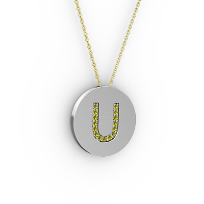 Peridot 8 ayar beyaz altın kolye (40 cm altın rolo zincir)