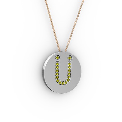 Peridot 925 ayar gümüş kolye (40 cm rose altın rolo zincir)