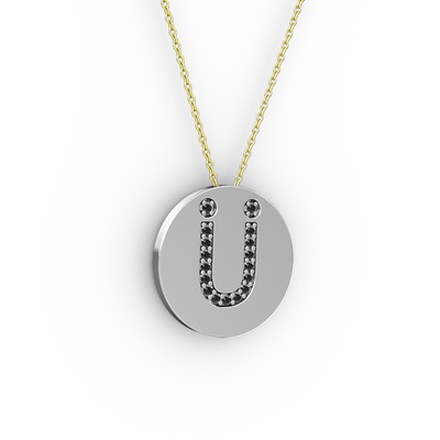 Siyah zirkon 18 ayar beyaz altın kolye (40 cm altın rolo zincir)