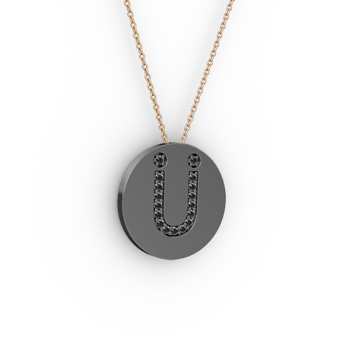 Siyah zirkon 925 ayar siyah rodyum kaplama gümüş kolye (40 cm rose altın rolo zincir)